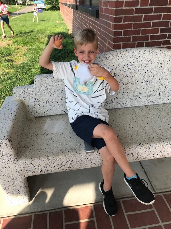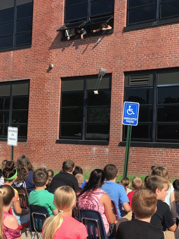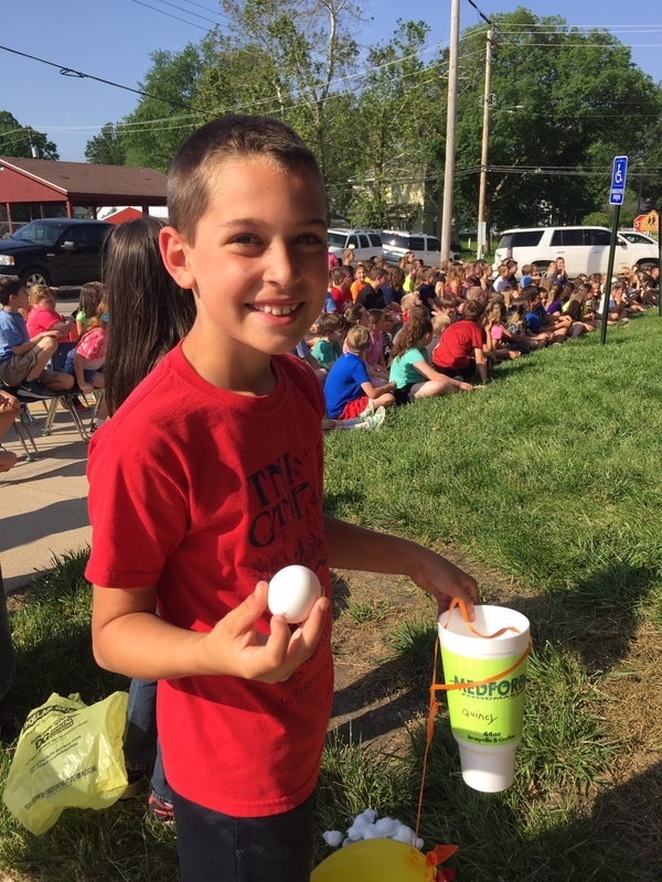 Third Grade students created devices to save an egg from a two story drop. Many of the eggs survived. The devices were very creative and protective.