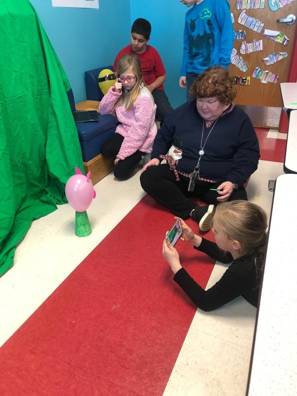 The students then designed and created their own balloon characters, programmed a robot to carry the balloon and filmed their balloon using a green screen. It was not easy to get the robot to carry the balloon correctly and many students had to start over several times after their balloon popped or fell over.