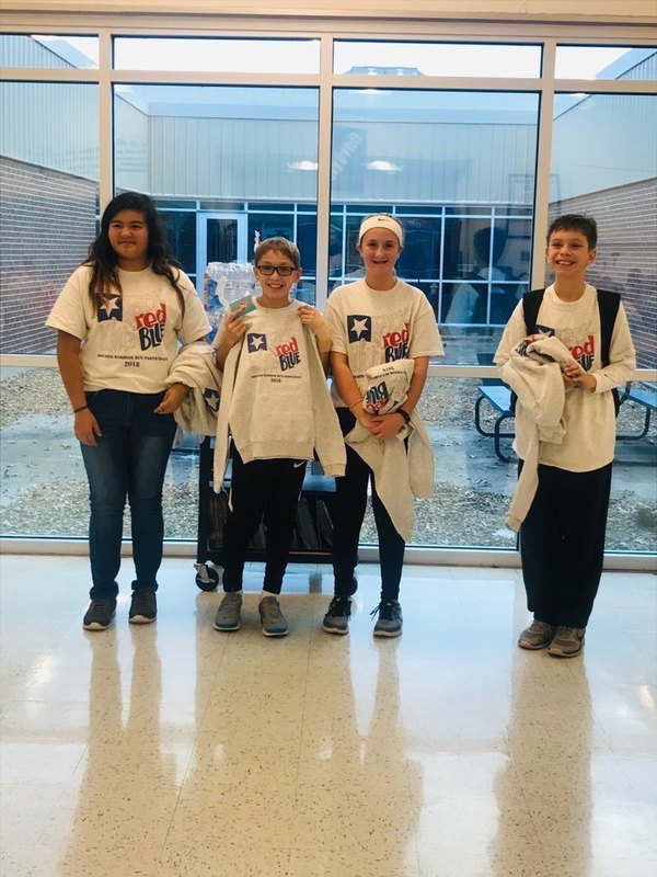 Pictured are top collectors from L-R: Sarah Robles (6th grade - $410), Alex Hubbell (7th grade - $195), Ava Burney (6th grade - $440), and Kristopher Turnbaugh (5th grade - $120).