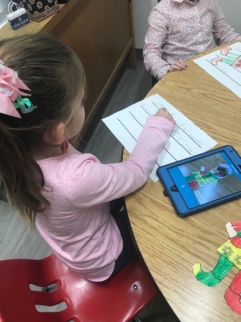 The Kindergarten students colored elves and wrote about them. The exciting part was when they used tablets to make those elves speak!