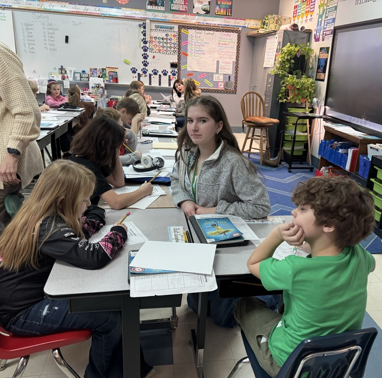 High school students lead lessons at East Elementary. Mrs. Duggans 3rd graders learned about creative symmetry. Mrs. Medford's class was assisted students in rewriting an unexpected fairytale by using non-traditional parts of speech. Such a great morning working together!