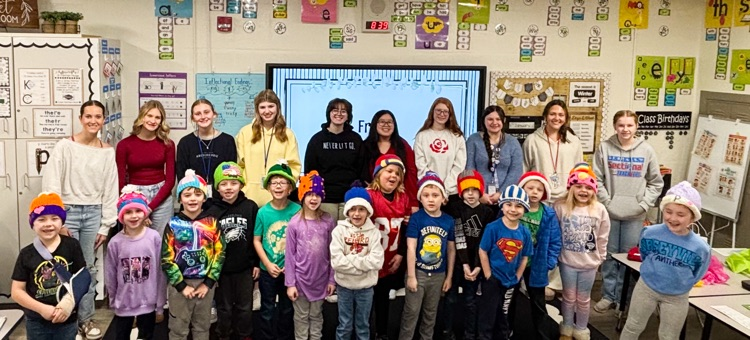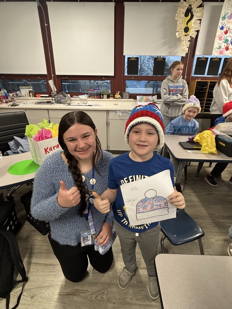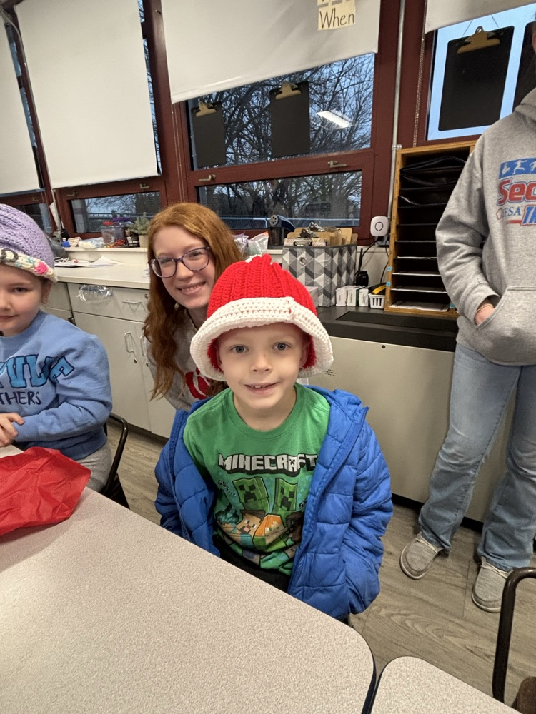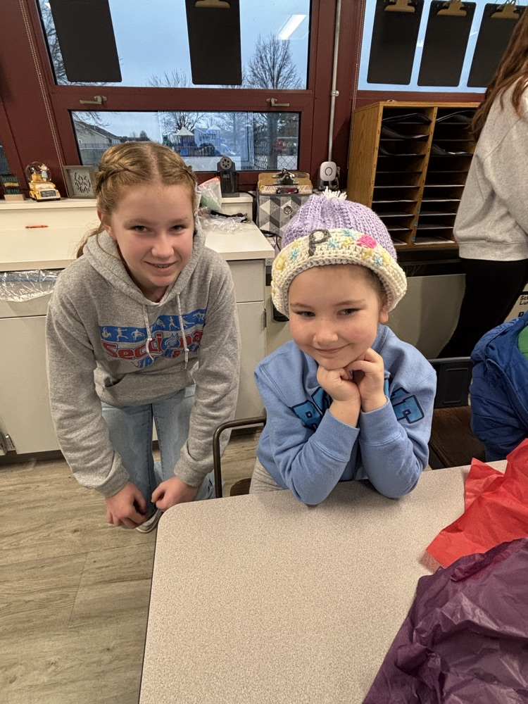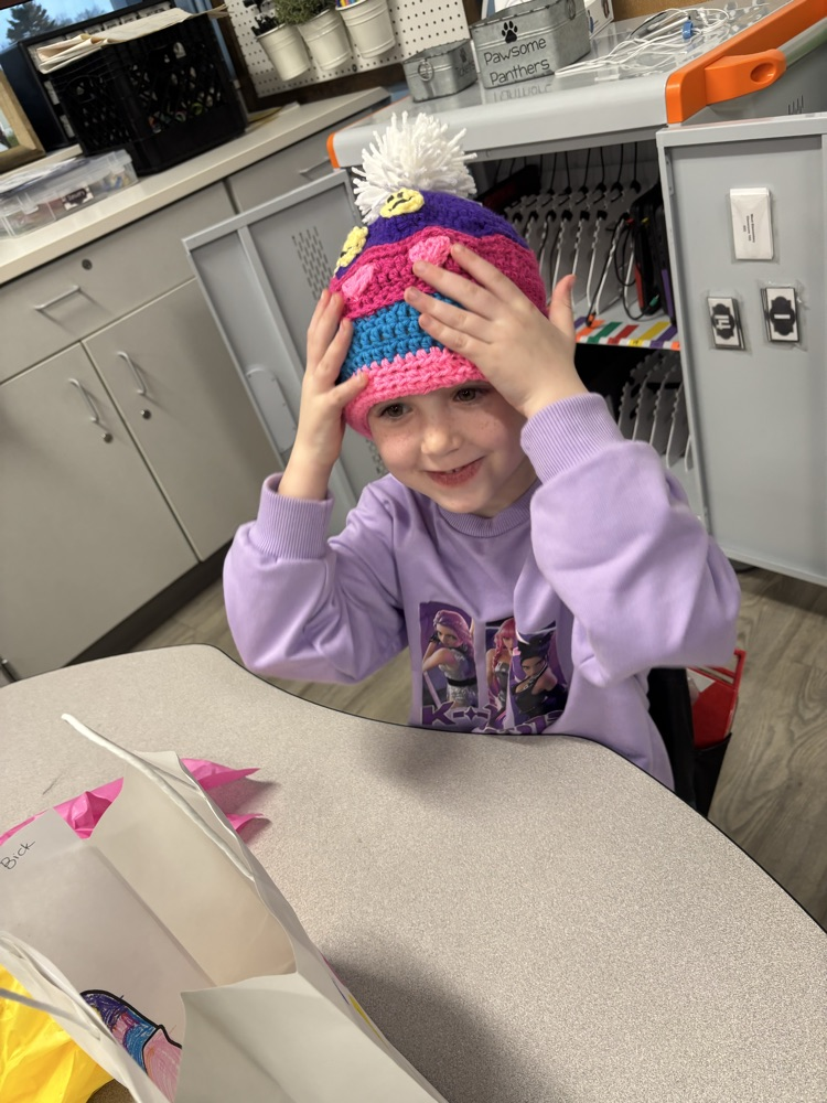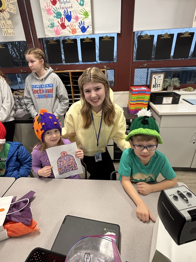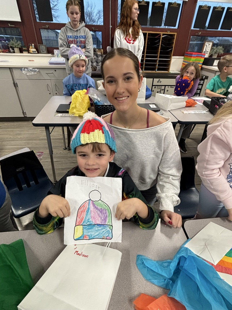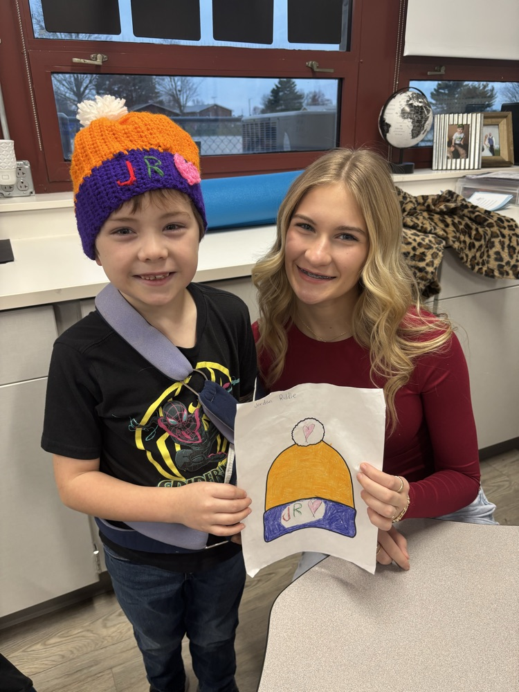 JCHS Design students learned that some 1st graders designed winter hats on paper. The skilled high schoolers surprised the kids with wearable crochet hats that looked just like their drawings. ❄️ 🧶 🩵 🐾