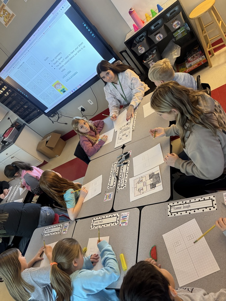 High school students lead lessons at East Elementary. Mrs. Duggans 3rd graders learned about creative symmetry. Mrs. Medford's class was assisted students in rewriting an unexpected fairytale by using non-traditional parts of speech. Such a great morning working together!