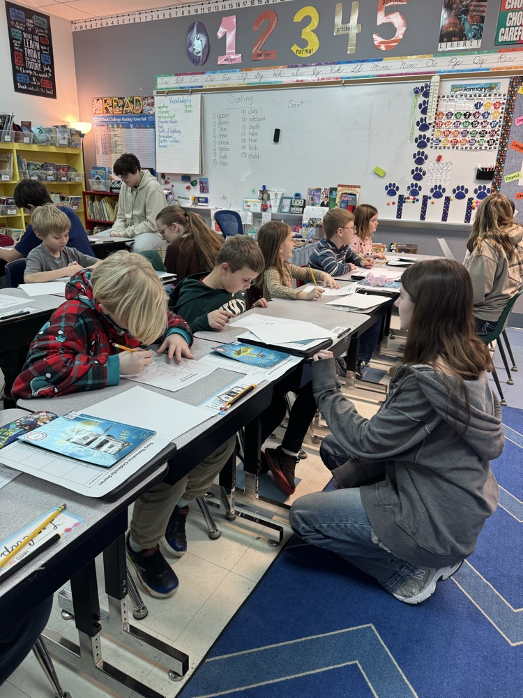 West 1st Graders partnered with JCHS students to work on math fact families. 🩵 🐾