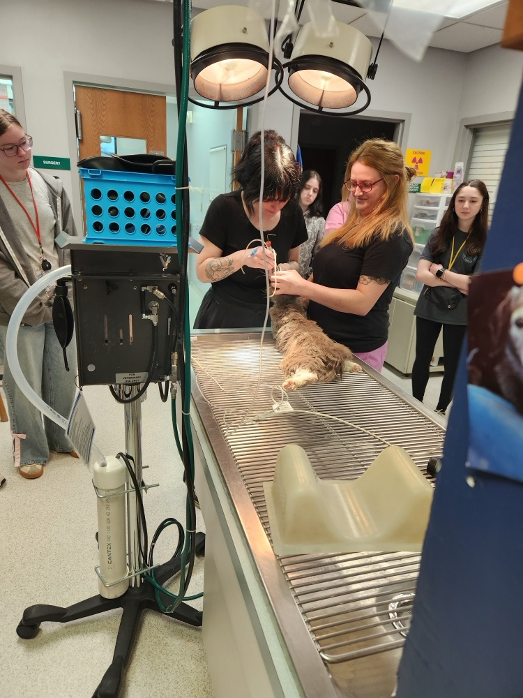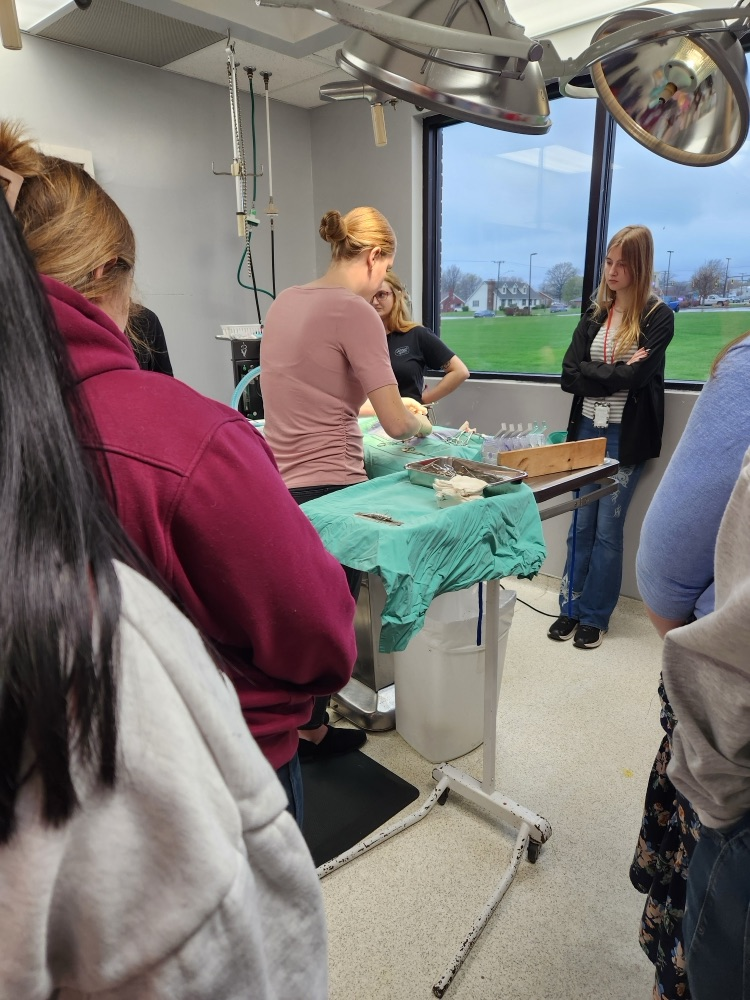 Mrs. Nichols Vet Science class took a field trip to the Jersey Calhoun Vet Clinic today. Dr. Anna Wendell and her staff for talked to the students and showed them around. Students got to see a cat be prepared for surgery as well as watch the surgery, see a dog having a dental procedure, and view an x-ray.